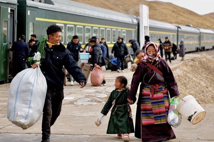 今年春节,是小学生次仁巴宗第一次从那曲坐火车回家过年。小时候,她常在站台旁看着列车飞驰而过。当得知自己在雁石坪站就可以坐上火车时,她格外开心。